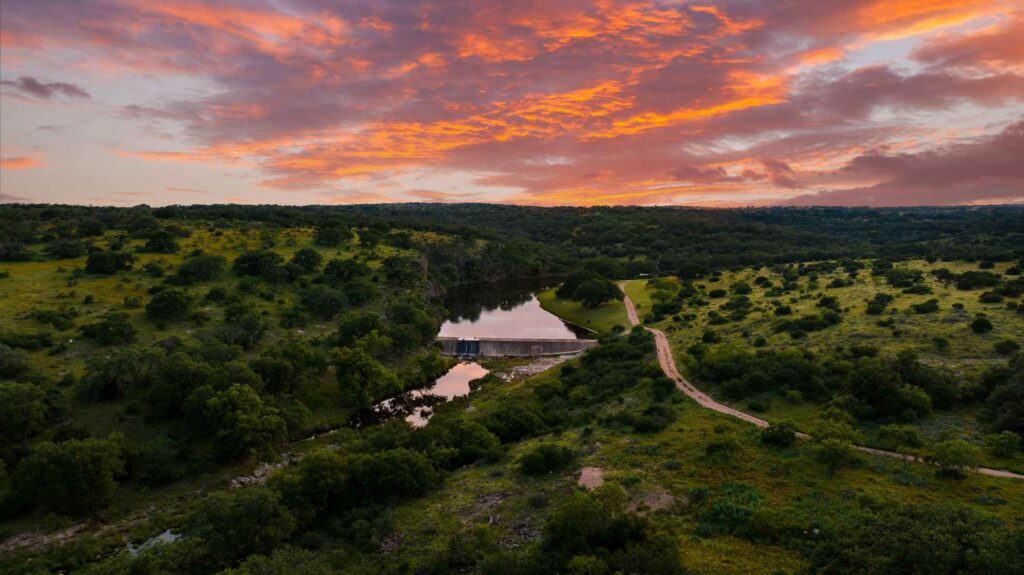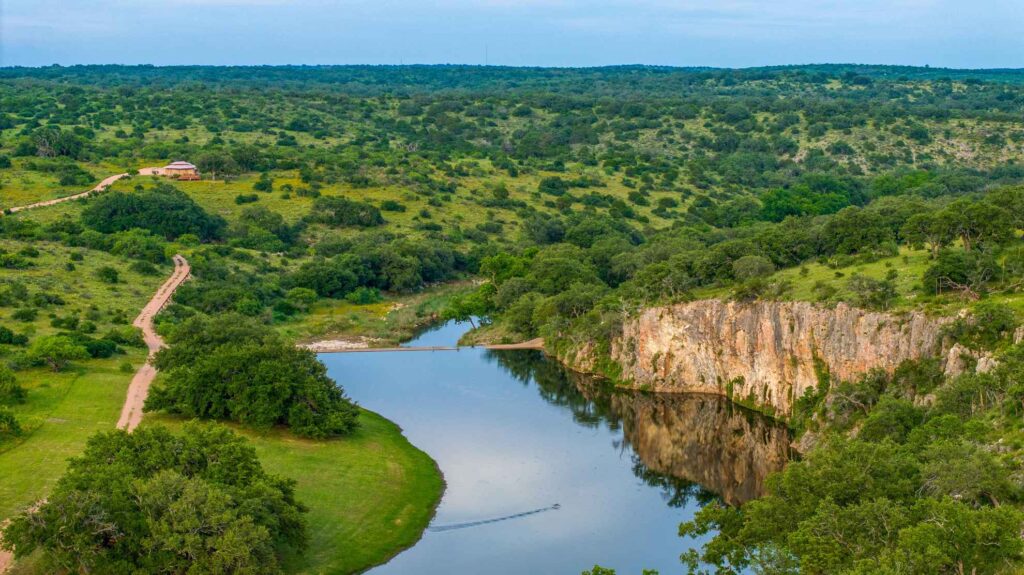 Honey Creeks valley remains a peaceful sanctuary, featuring ancient bluffs, caves, and a shimmering spring-fed lake teeming with bass and catfish ideal for fishing, relaxing, and soaking in natures beauty. The ranchs well-maintained road system ensures easy access throughout the sprawling landscape, making exploration a breeze.