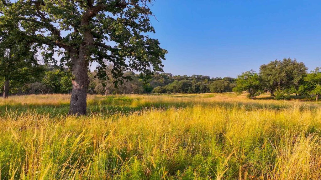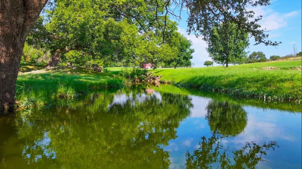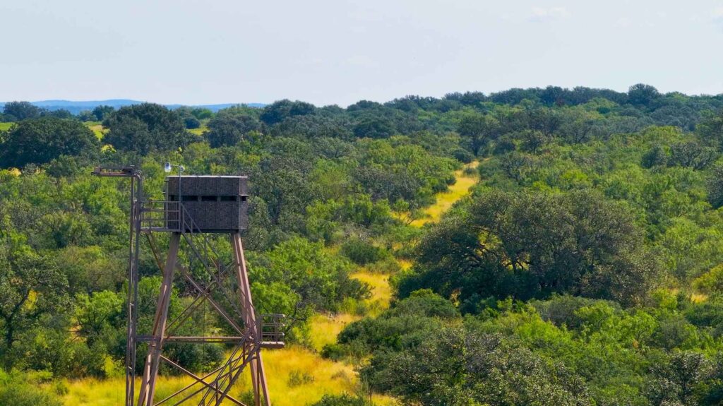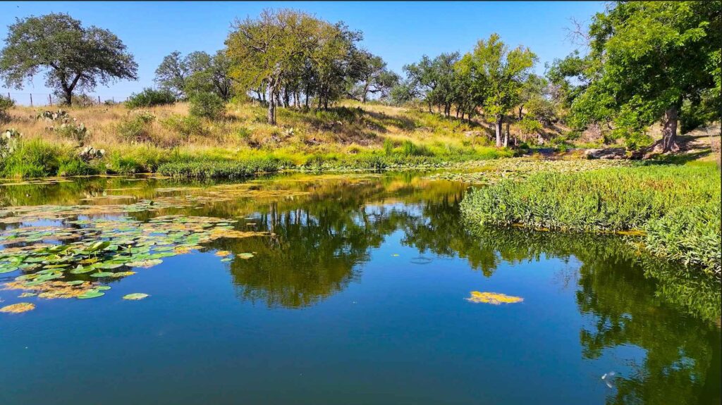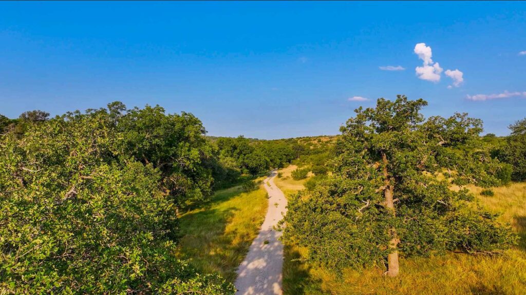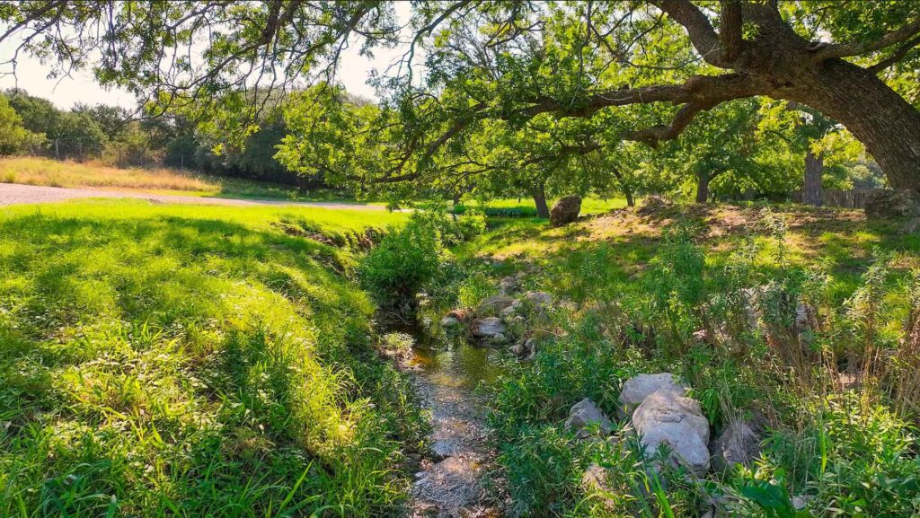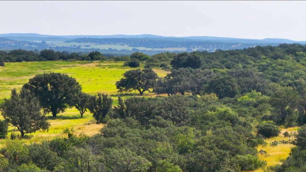 At the heart of the property flows a high producing artesian spring that pummels from the ground 24/7, feeding the crystal-clear waters of Honey Creek, which winds over 2.2 miles through the ranchs picturesque landscape. The land is a mosaic of breathtaking hardwoods, bottomlands adorned with pecan groves, seepy springs, and lush coastal grasses creating ideal habitat for abundant wildlife. Long range views stretch across the rolling terrain, offering breathtaking vistas from many elevated vantage points. Pockets of native fauna are scattered throughout the ranch, adding to its vibrant ecosystem and natural beauty.